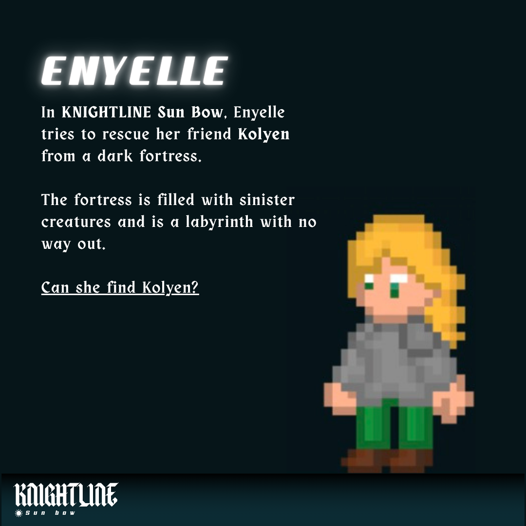 In KNIGHTLINE Moon Bow, you play the same story, but from the perspective of Kolyen, who is searching for Enyelle. Moon Bow features a differently structured fortress, altered enemies, and places Kolyen in a hopeless situation with no guarantee of success.
